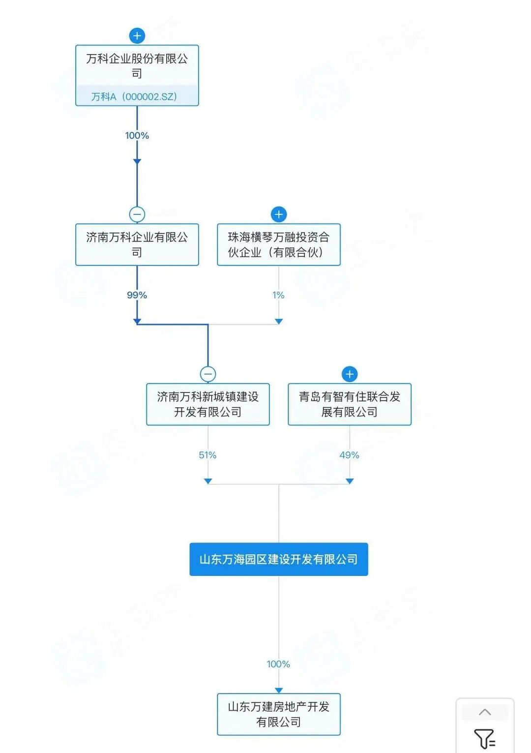 山東萬(wàn)海園區(qū)建設(shè)開發(fā)有限公司成立于2017年12月,注冊(cè)資本1億元,由萬(wàn)科A(000002.SZ)全資子公司濟(jì)南萬(wàn)科企業(yè)有限公司旗下企業(yè)與青島有智有住聯(lián)合發(fā)展有限公司分別持股51%和49%。今年以來(lái),該公司已兩次被濟(jì)南市濟(jì)陽(yáng)區(qū)人民法院列為被執(zhí)行人,累計(jì)被執(zhí)行金額達(dá)167.33萬(wàn)元。