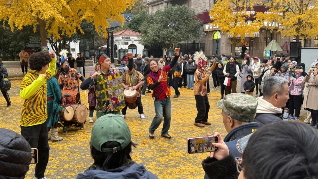 暖陽為黃金城道的銀杏葉鍍上金邊,剛剛過去的周末,第六屆銀杏藝術(shù)生活節(jié)精彩啟幕。圍繞“共創(chuàng)”“共融”“共生”三大主題,這條國際街區(qū)成了流動(dòng)的藝術(shù)長廊,中外居民在金葉紛飛中,沉浸式感受藝術(shù)與生活交融的獨(dú)特魅力。