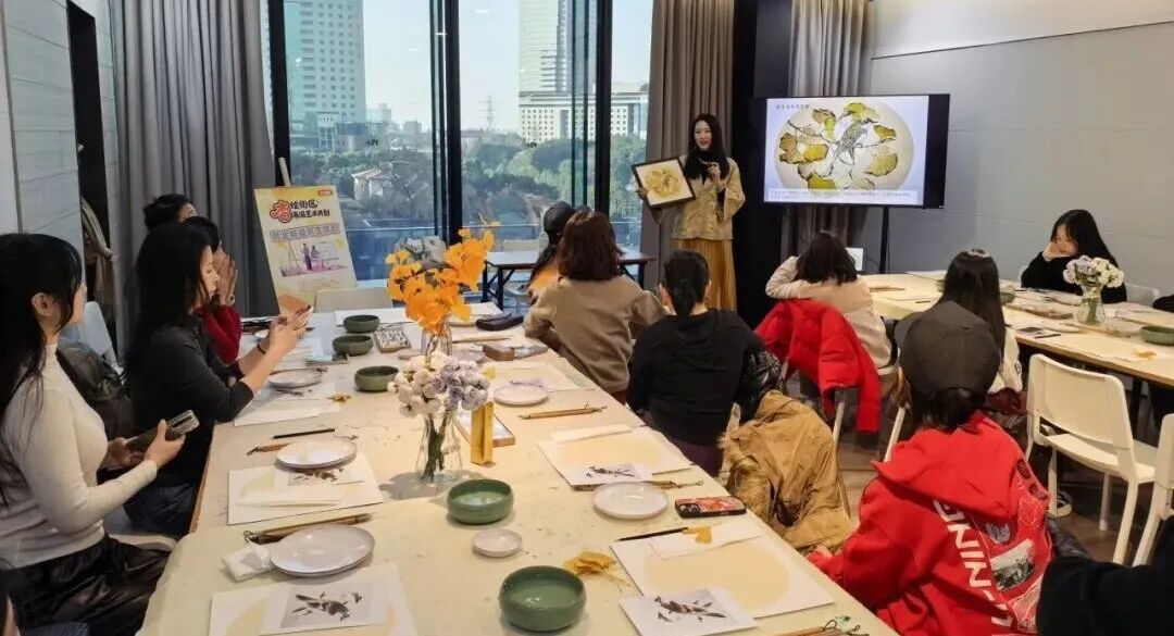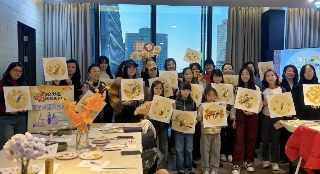 程十發(fā)美術(shù)館內(nèi),專業(yè)畫師引導(dǎo)下,十余組中外居民家庭執(zhí)畫筆,將街區(qū)里的璀璨銀杏美景定格在水墨畫作中,完成了一場從自然到藝術(shù)的升華之旅。