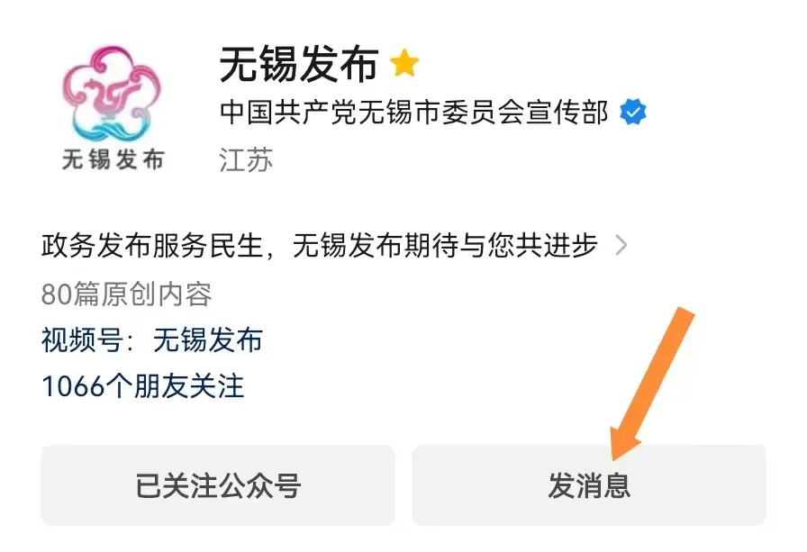 1. 關(guān)注“無錫發(fā)布”微信公眾號(hào)