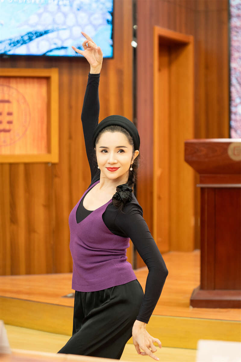 見面會(huì)現(xiàn)場,古麗米娜表演了舞蹈短片《龜茲》中的經(jīng)典舞段。主辦方供圖