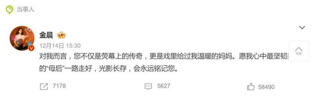 金晨緬懷何晴:您是熒幕傳奇,更是戲里予我溫暖的媽媽