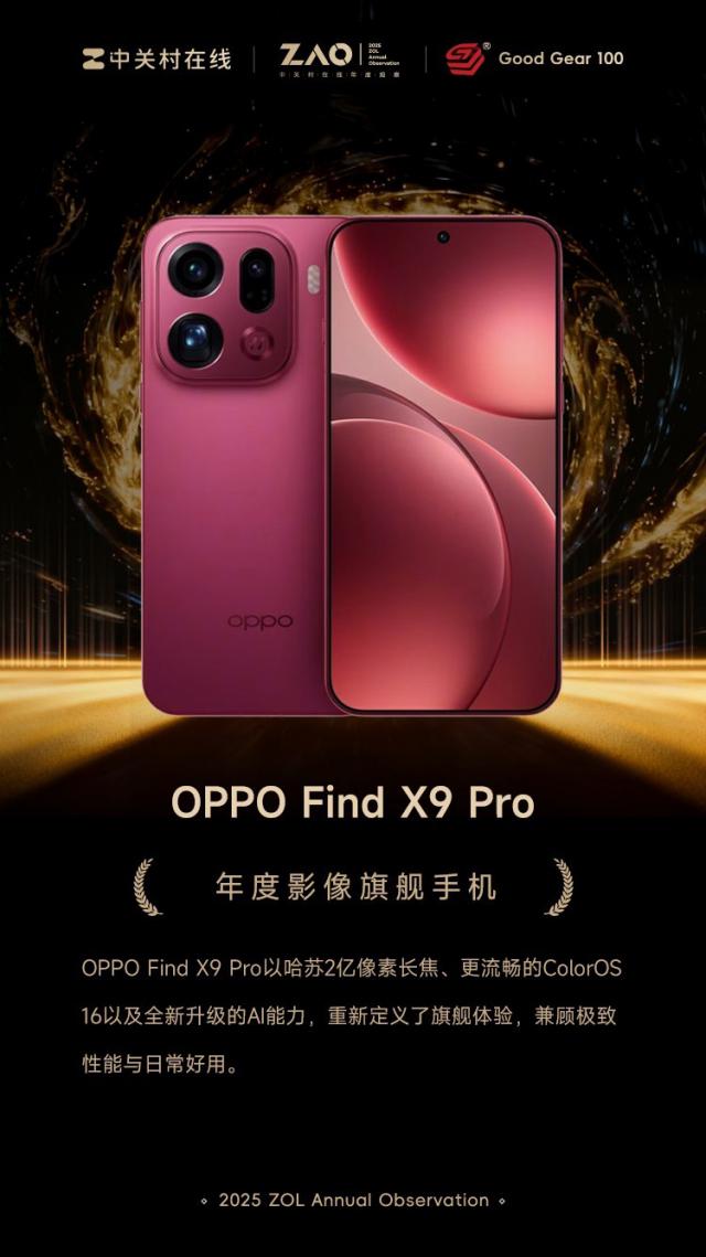 【ZOL中關(guān)村在線原創(chuàng)新聞】2025年度中關(guān)村在線年度觀察推出的百大優(yōu)秀產(chǎn)品獎(jiǎng)項(xiàng)Good Gear 100(簡(jiǎn)稱(chēng)GG100),旨在表彰科技行業(yè)的年度標(biāo)桿產(chǎn)品。近日,2025年度GG100獲獎(jiǎng)名單正式揭曉,OPPO Find X9 Pro憑借卓越表現(xiàn)斬獲年度影像旗艦手機(jī)獎(jiǎng)項(xiàng)。