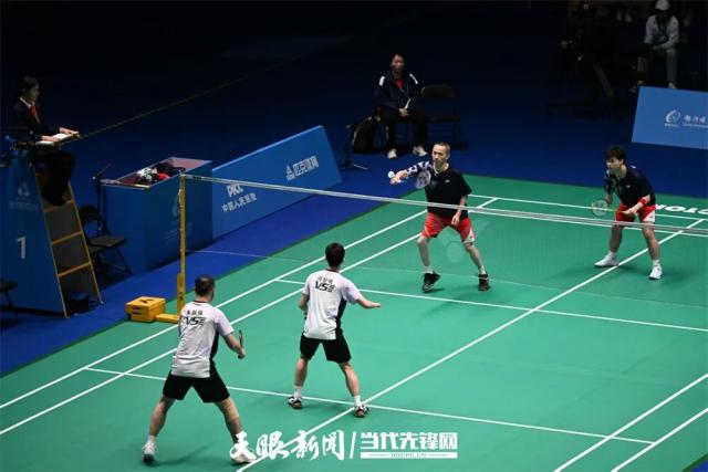 下午的SU5級(jí)男子雙打決賽中,53歲的老將歐偉與李明潘搭檔,成為賽場(chǎng)上的焦點(diǎn)組合。比賽中,歐偉敢打敢拼,多次飛身救球突破身體極限,兩人配合默契,首局以21-16拿下。第二局對(duì)手奮起直追,雙方戰(zhàn)至20平,最終歐偉和李明潘頂住壓力,拿下關(guān)鍵兩分奪冠,點(diǎn)燃賽場(chǎng)氣氛。