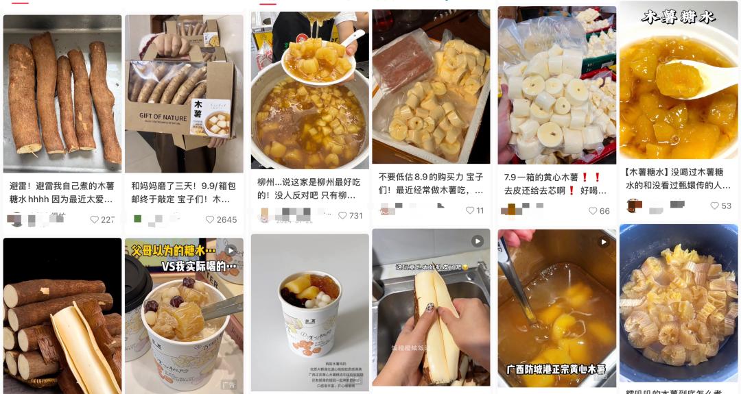 小紅書上,木薯相關(guān)話題瀏覽量超2億,討論量過百萬。消費(fèi)者評(píng)價(jià)其“口感介于紅薯與芋頭之間,更有韌性”“是大自然的奇跡”“榮升小料TOP1”。還有網(wǎng)友分享“焦糖木薯”做法——電飯鍋煮木薯忘加水意外制成,該帖點(diǎn)贊過萬,引發(fā)復(fù)刻熱潮。