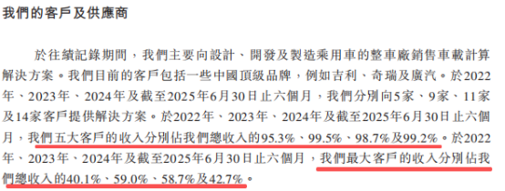 業(yè)務(wù)模式的結(jié)構(gòu)性風(fēng)險(xiǎn)日益突出,客戶與供應(yīng)商集中度過高是外界詬病的焦點(diǎn)。2022年至2024年,客戶數(shù)量從5家增至11家,2025年上半年達(dá)14家,但前五大客戶收入占比均超95%,2023年更是高達(dá)99.5%,最大客戶收入占比在2023年、2024年均接近60%,業(yè)績(jī)極易受單一客戶波動(dòng)影響。
