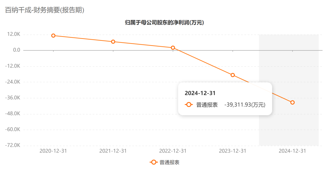2025年前三季度,百納千成業(yè)績(jī)持續(xù)惡化。報(bào)告期內(nèi),公司實(shí)現(xiàn)營(yíng)收1.77億元,同比下降73.43%;歸母凈利潤(rùn)為-6753.81萬(wàn)元,虧損幅度較上年同期進(jìn)一步擴(kuò)大。