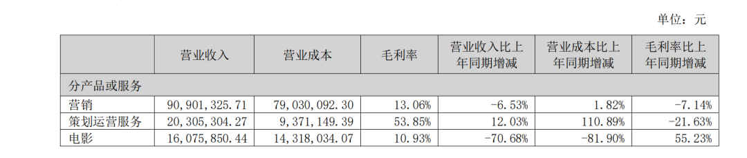 盡管百納千成從影視業(yè)務(wù)拓展至文旅、營(yíng)銷、IP運(yùn)營(yíng)等領(lǐng)域,進(jìn)行了多次業(yè)務(wù)轉(zhuǎn)型,但從業(yè)績(jī)來(lái)看效果并不理想。