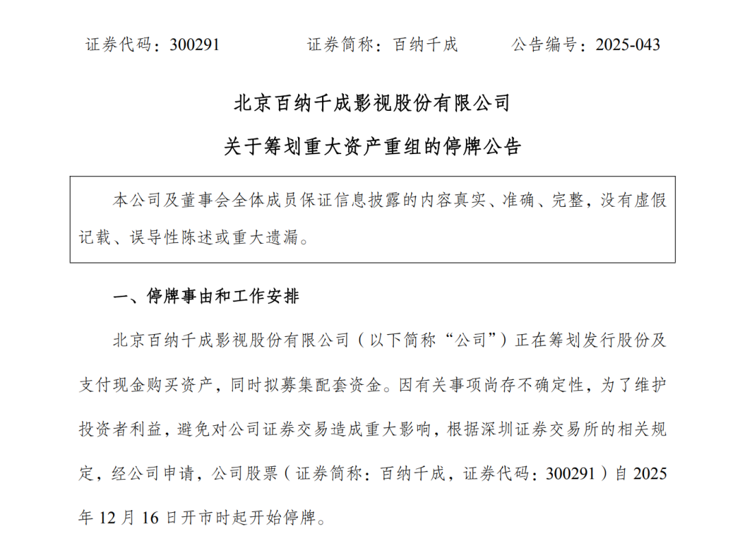曾為影視巨頭的百納千成(證券代碼:300291)正籌劃重大資產(chǎn)重組,擬收購(gòu)眾聯(lián)世紀(jì)100%股權(quán),借此向AI領(lǐng)域轉(zhuǎn)型。