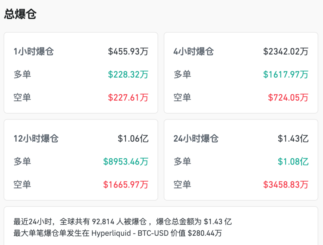 根據(jù)Coinglass提供的數(shù)據(jù),過去24小時(shí)內(nèi),加密貨幣市場爆倉人數(shù)已超過9.2萬。