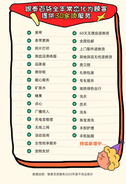 過(guò)去一年,銀泰百貨在服務(wù)創(chuàng)新領(lǐng)域持續(xù)深耕,推動(dòng)商場(chǎng)服務(wù)從單純的“功能滿足”向深層次的“情感共鳴”邁進(jìn),新增綠色出行、女性悅享、寵物友好等特色服務(wù),常態(tài)化為顧客提供30余項(xiàng)貼心服務(wù),讓商場(chǎng)不再局限于購(gòu)物空間,更成為有溫度的“生活搭子”。