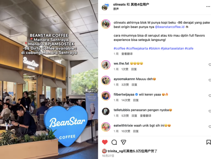 無論是國內(nèi)的黑芝麻系列,還是海外的金箔拿鐵,比星咖啡都堅守“精品平價”的核心定位。這種靈活策略使其成功切入海外主流消費場景,比如在印尼市場,曾創(chuàng)下門店日銷800杯以上的成績,證明其精品平價定位與產(chǎn)品創(chuàng)新模式能跨越文化差異,吸引更廣泛的消費群體。