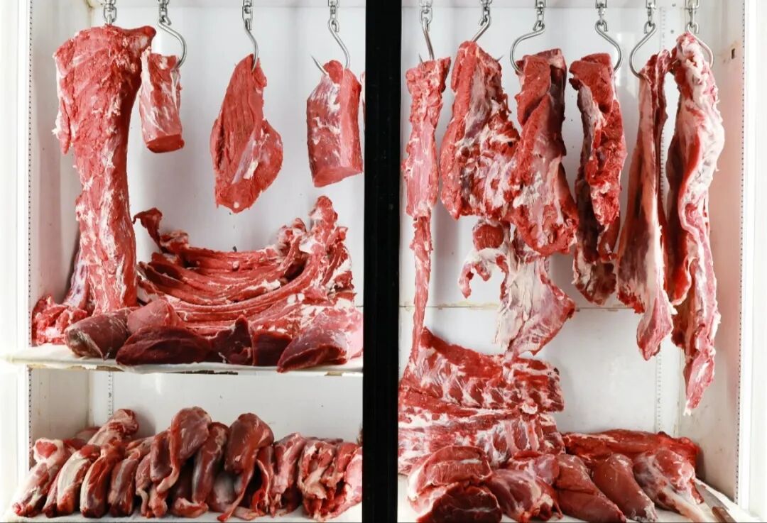 在一家牛肉攤位前,玻璃柜里擺著牛里脊、吊龍、板腱、龍骨等部位,攤主介紹:“牛里脊嫩,適合燙火鍋、爆炒;吊龍鮮嫩,涮煮、燒烤、燉湯都香;板腱鹵醬牛肉或燙火鍋,越嚼越有勁兒?!?/p>