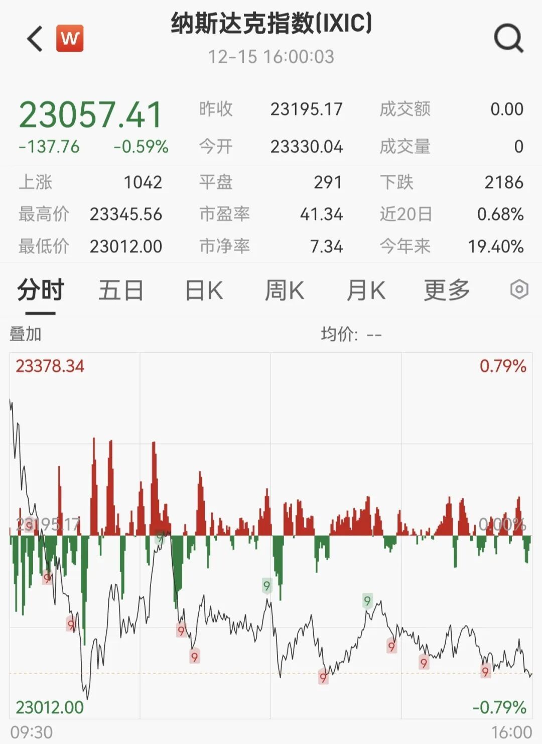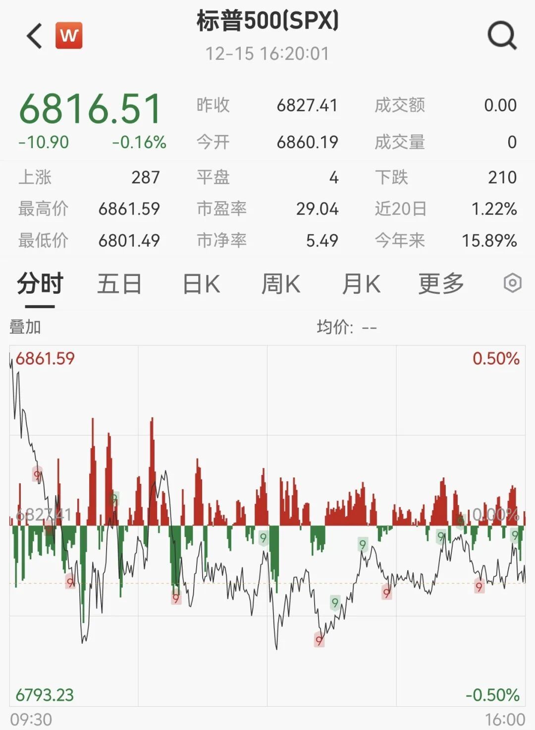 美國三大股指均呈現(xiàn)小幅下跌態(tài)勢,道瓊斯工業(yè)平均指數(shù)下跌0.09%,報收48416.56點;標準普爾500指數(shù)下跌0.16%,報收6816.51點;納斯達克綜合指數(shù)下跌0.59%,報收23057.41點。