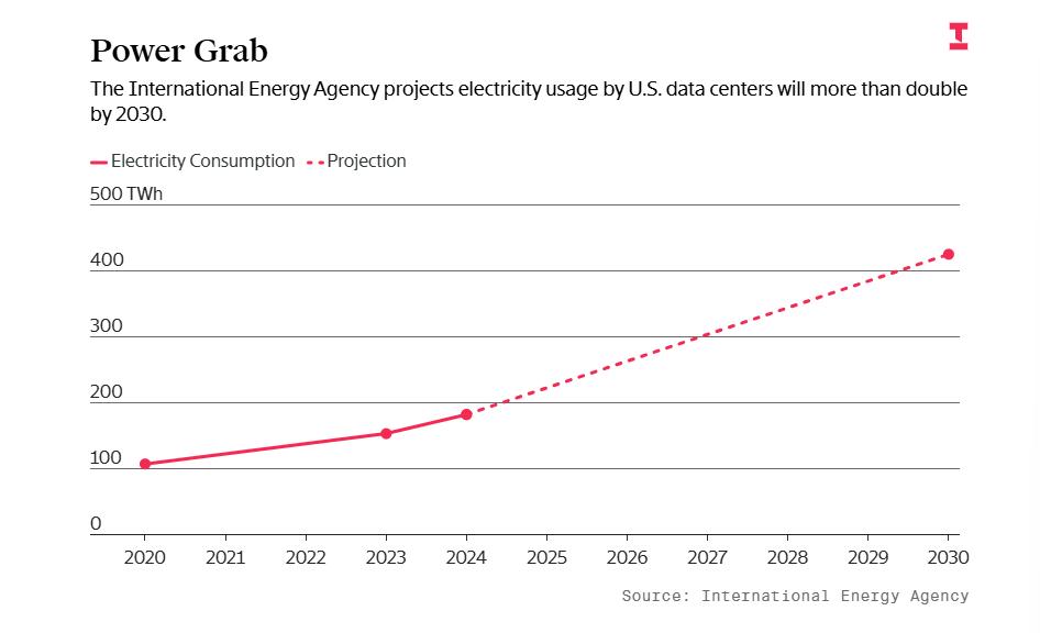 圖:美國能源署預測,美國數(shù)據(jù)中心的用電量預計將在2030年前翻倍