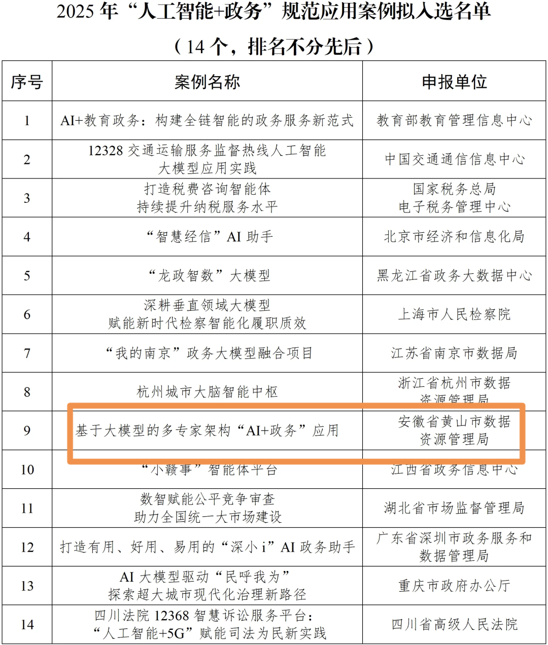 安徽唯一入選!黃山“AI+政務(wù)”項(xiàng)目躋身國家級規(guī)范應(yīng)用案例