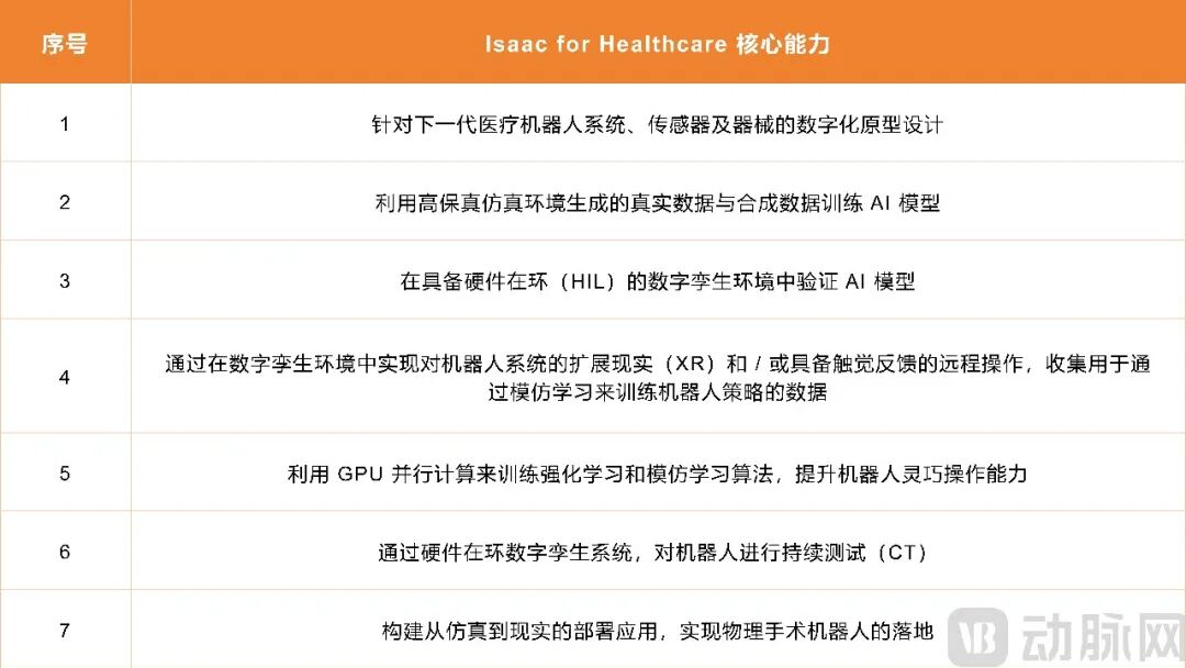以NVIDIA Isaac for Healthcare為例,它能解決訓(xùn)練數(shù)據(jù)不足與預(yù)算問題:NVIDIA Cosmos生成接近真實(shí)世界的合成數(shù)據(jù),契合醫(yī)療機(jī)器人訓(xùn)練;NVIDIA Omniverse創(chuàng)建高保真數(shù)字孿生時生成的合成數(shù)據(jù),可用于模型微調(diào)和強(qiáng)化訓(xùn)練。同時,數(shù)字孿生與物理AI融合,為醫(yī)療機(jī)器人/器械開發(fā)提供全流程支持,降低研發(fā)成本、縮短周期。