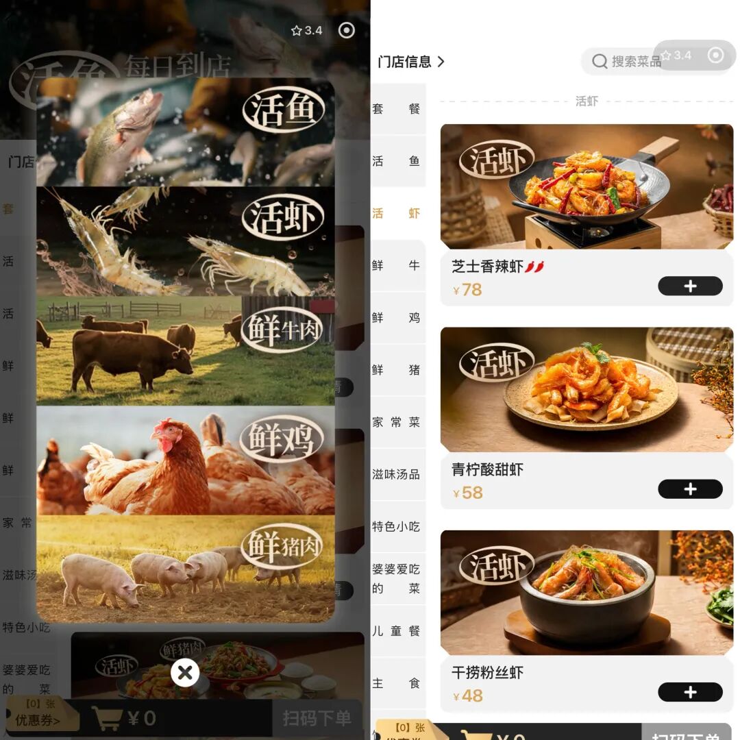 菜單結(jié)構(gòu)大幅調(diào)整,酸菜魚不再是唯一招牌,新增超20道菜品,形成以活魚、活蝦、鮮牛、鮮雞、鮮豬為核心的產(chǎn)品矩陣。三大招牌菜品為爆炒鮮牛肉、五指毛桃焗鮮雞、招牌鱸魚酸菜魚,還推出芝士香辣蝦、水煮牛肉等新菜,以及雞蛋燒腐竹等家常菜,適配家庭、朋友聚餐等多場景。價格與原有門店相近,如爆炒鮮牛肉72元、五指毛桃焗鮮雞58元,并推出“鮮活吃肉雙人餐”(150元)等組合套餐。