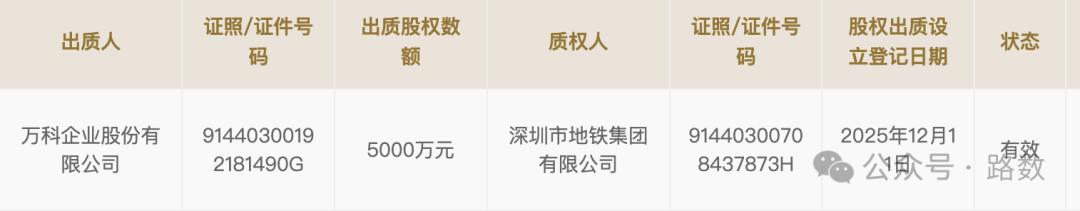 不信的話,看看工商登記信息便知:萬科已向深鐵質(zhì)押了三家公司的股權(quán)。