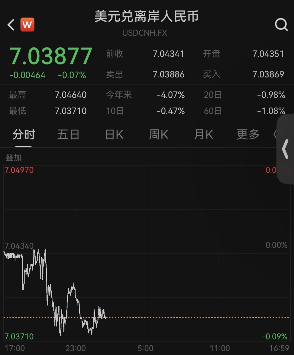 在岸市場中,人民幣對美元即期匯率盤中最高達(dá)到7.0417,同樣刷新了2024年10月以來的新高紀(jì)錄。