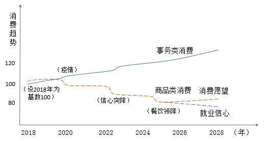 事務類消費與商品類消費分化(示意)