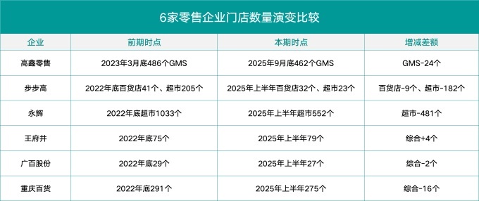 中國百貨協(xié)會數(shù)據(jù)顯示,2022年以來部分代表性零售企業(yè)門店數(shù)量減少,主要涉及傳統(tǒng)百貨店、綜合超市(GMS)和購物中心(SC),與國際消費趨勢一致,整體漸入低迷狀態(tài)。